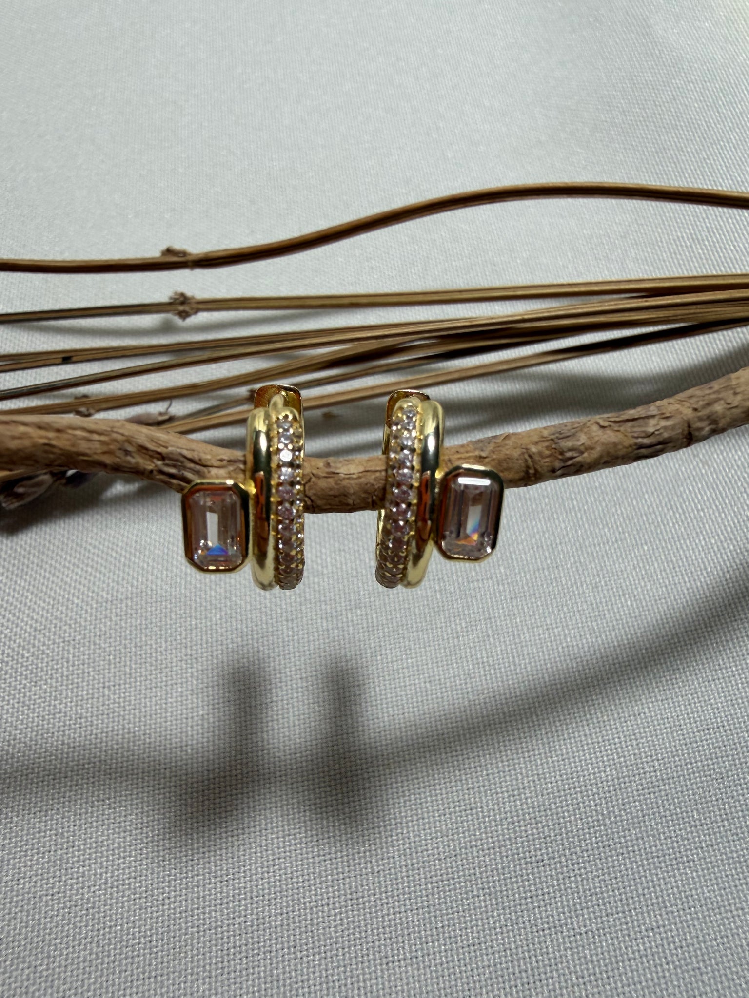 The Yellow Pave Huggies are made of Solid Silver 925 plated in gold and rhinestones. They’re sold in pairs.