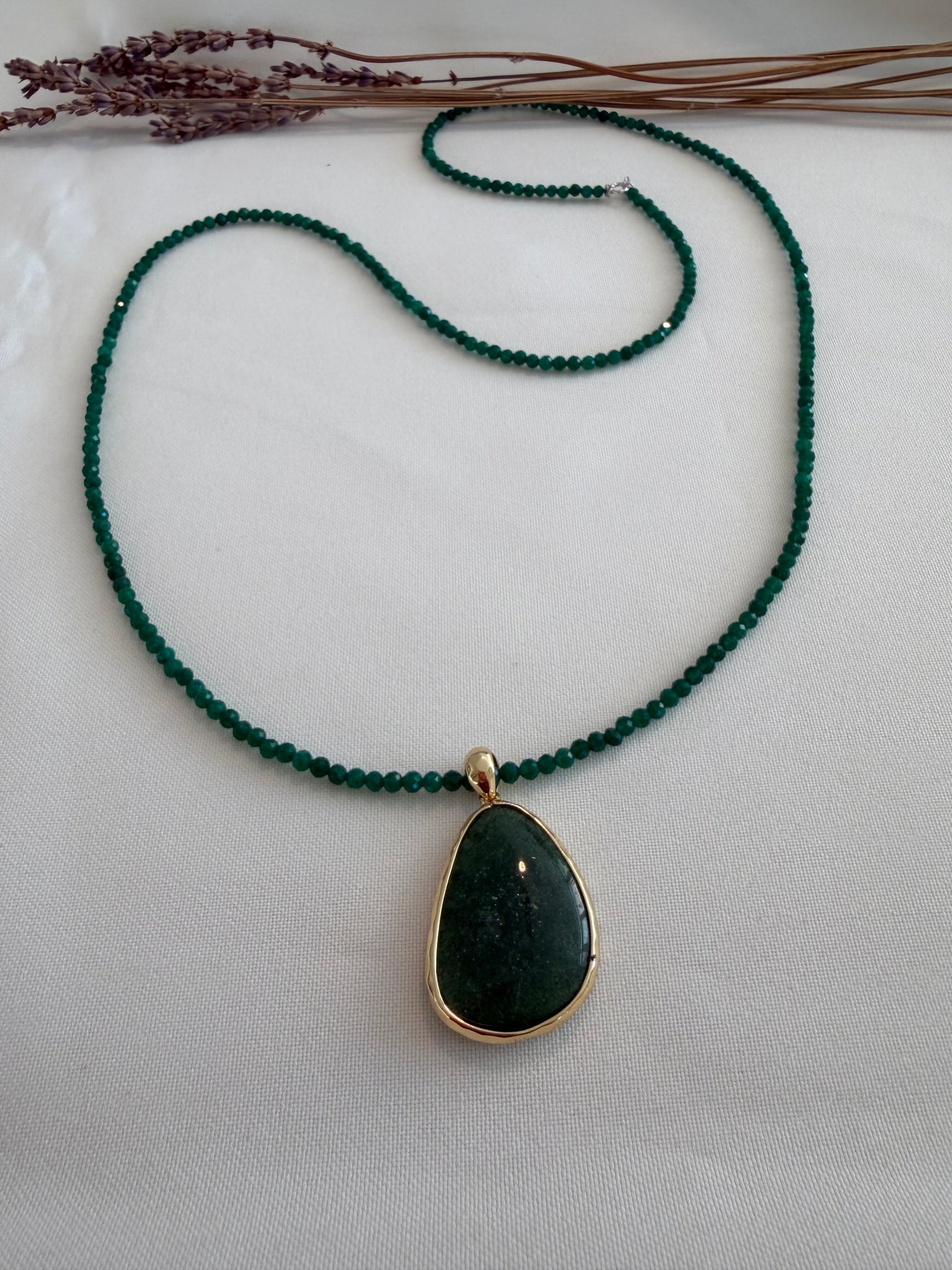 The Green Beads Necklace is made of green beads. It’s 36” long,