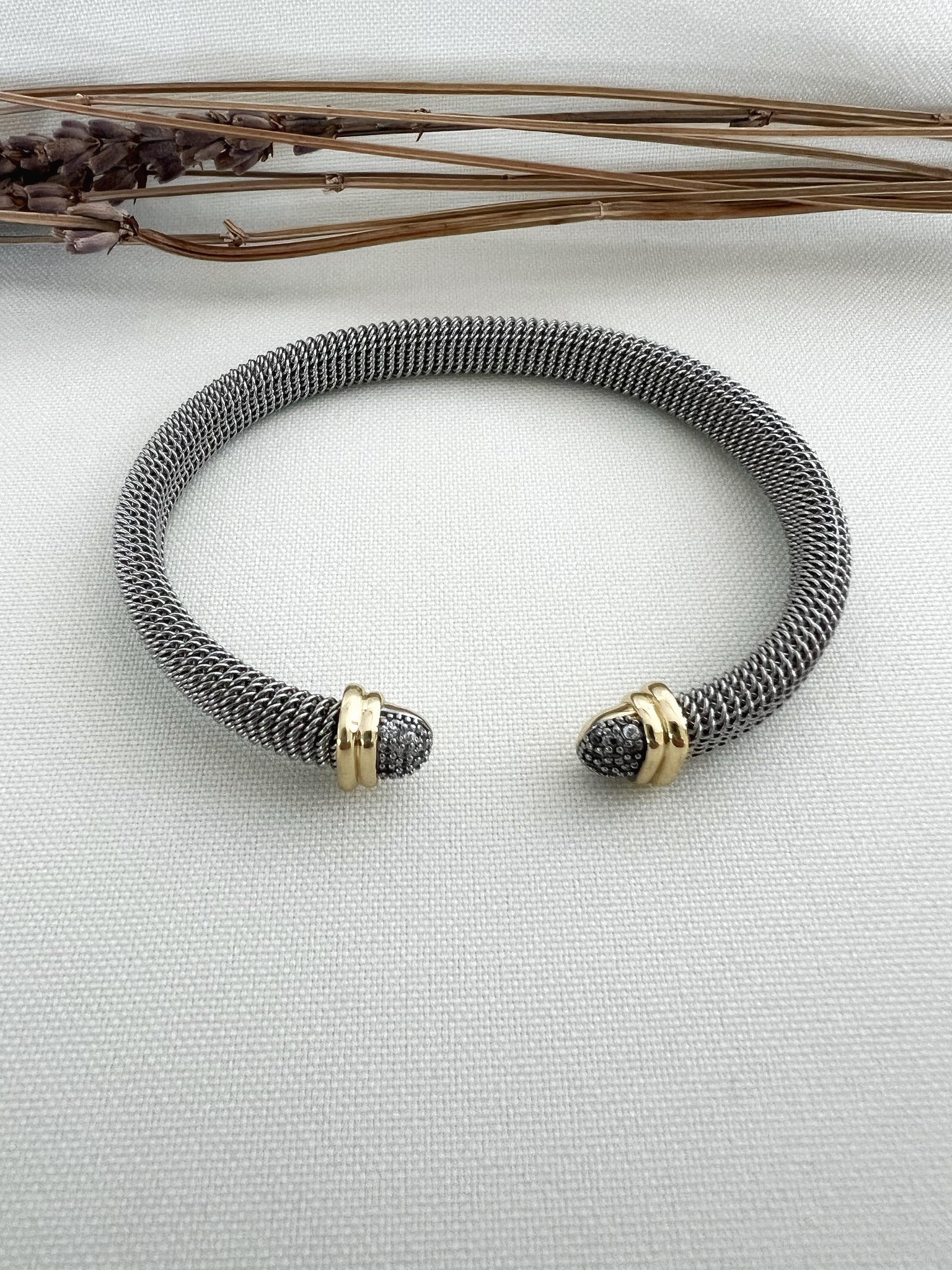 The Mesh Two Tone Bangle is made of Stainless Steel