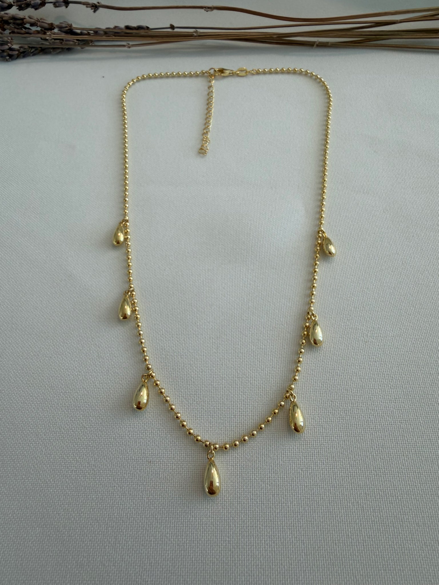 The Yellow Necklace is made of Solid Silver 925 plated in gold. It’s 16” long with a 2” extension.